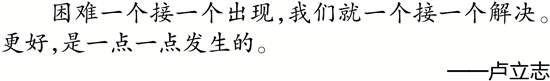 困难一个接一个出现,我们就一个接一个解决。更好,是一点一点发生的。