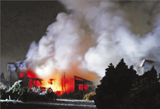 12月9日,在日本青森市,一座房屋在地震后发生火灾。 新华社/法新