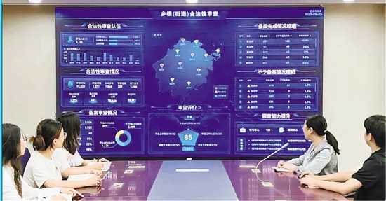 杭州市萧山区合法性审查工作人员研判审查情况。 省司法厅供图