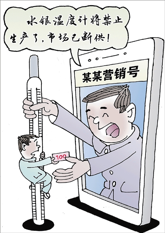 近日,我国将全面禁止生产含汞体温计和含汞血压计产品引发热议。有人因此忙着囤货,有人吐槽替代品“不靠谱”,还有营销号趁机渲染“断供焦虑”。水银体温计之所以要“退出历史舞台”,主要原因是水银的强毒性与不可降解性,而新的温度计准确性并不弱。炒作水银体温计让一款面临退市的产品“升温”,完全没有必要,大家千万别被带偏节奏。 蒋跃新 作 |