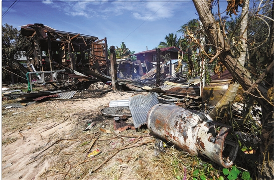12月14日,在泰国四色菊府,一座房屋毁于袭击。 新华社/美联