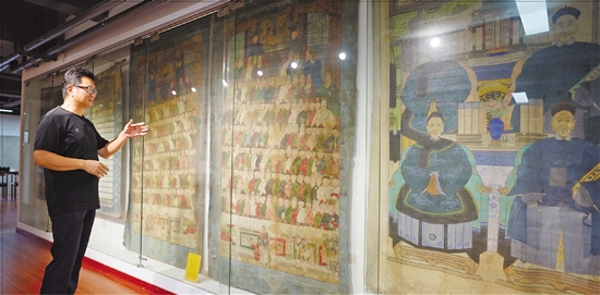 励双杰向记者介绍挂谱(即家谱的图示化,常悬挂于宗祠、厅堂或用于祭祀与典礼中)。 本报记者 贺元凯 摄