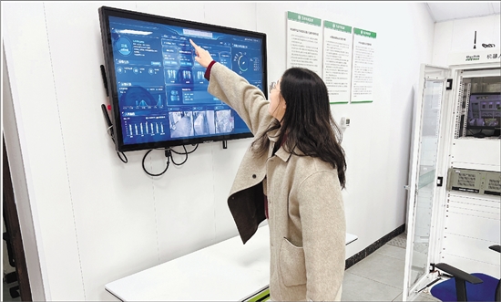 记者按动“一键换试剂”给机器人下指令。 受访者供图