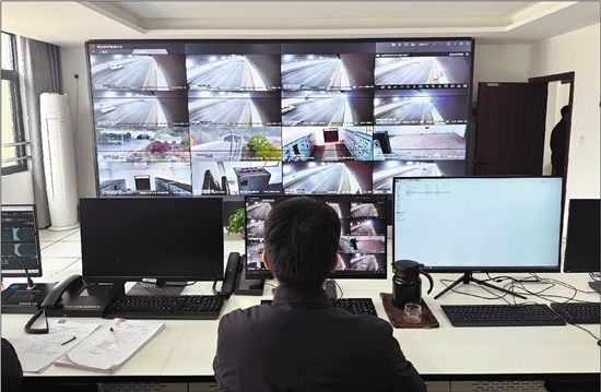 记者在东阳市桥隧综合管控平台操控巡检机器人。