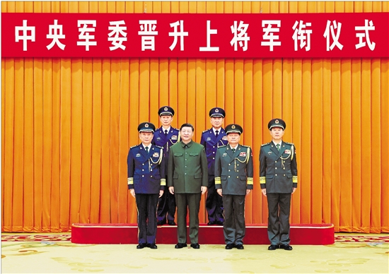 12月22日,中央军委晋升上将军衔仪式在北京八一大楼举行。中央军委主席习近平出席晋衔仪式。这是习近平等领导同志同晋升上将军衔的军官合影。