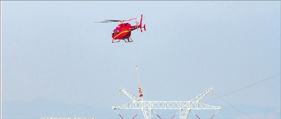 12月11日,国网衢州供电公司应用直升机绞车吊椅法完成特高压地线带电修补。