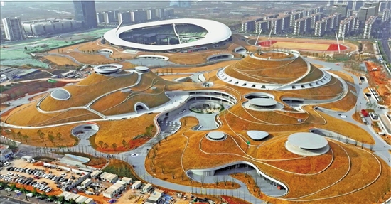 | 12月24日,衢州市体育中心“三馆”及配套工程全面竣工。这标志着这座世界级覆土建筑群完整落成。该项目总建筑面积16.5万平方米,近90%屋面将覆盖绿植。“三馆”包括拥有1万个座位的甲级体育馆、2000个座位的游泳馆和综合训练馆,将集顶级赛事、演艺演出、全民健身等功能于一体。 共享联盟·衢州 黄紫依 梁燕清 摄 |
