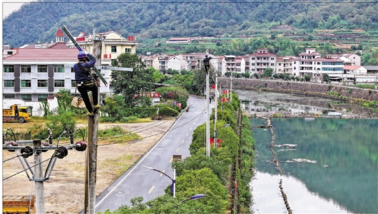 | 国网磐安县供电公司大力实施农村电气化提升工程,通过实地走访制定“一村一方案”,推进农网升级。目前,公司已为27个乡村完成电网改造,累计新建改造线路89.768公里,新增变压器26台,同时推进“上改下”和户联线美化工程,实现路灯亮化全覆盖。图为双溪乡史姆村改造工程现场。 通讯员 陈冰冰 陈梦雪 摄 |
