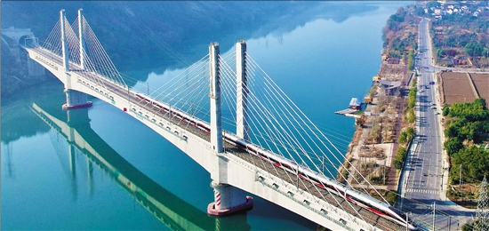 12月26日,杭衢高铁首趟始发列车C3132次复兴号动车组经过建德新安江特大桥。