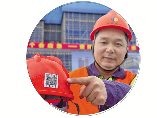 建筑工人展示“码上安薪”二维码
