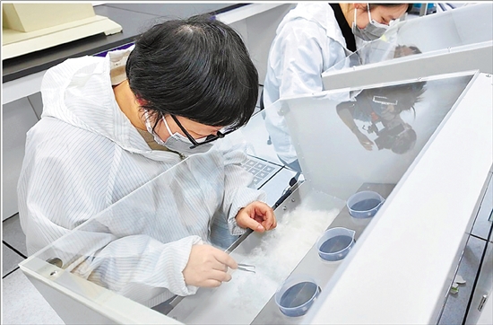平湖质检所检验员检测绒子含量。
