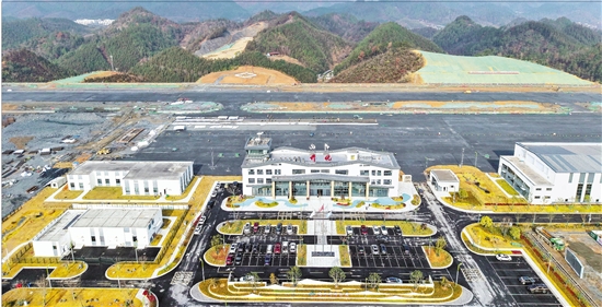 12月29日,衢州开化机场跑道施工现场一片繁忙,工人抢抓工期推进混凝土铺设作业,项目建设按下冲刺键。目前,机场航站区综合楼、机库、动力中心均已验收投用,机场空管、弱电等验收全部完成,整体建设进度达98.5%。 本报记者 林云龙 赵璐洁 通讯员 徐露婷 摄 |