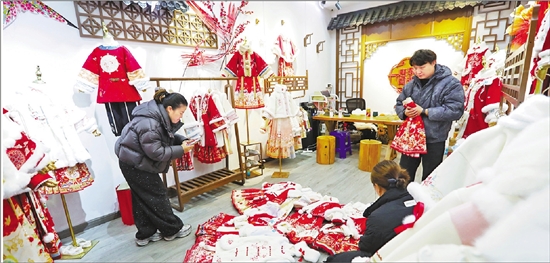 客商挑选年服 王洁涵 摄