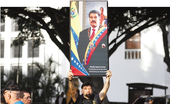 1月3日,民众在委内瑞拉首都加拉加斯的总统府附近抗议。 新华社发