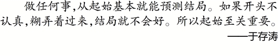 做任何事,从起始基本就能预测结局。如果开头不认真,糊弄着过来,结局就不会好。所以起始至关重要。