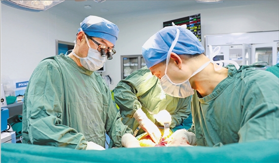 于存涛(左)在进行手术。 受访者供图