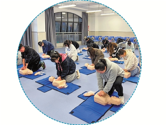 温医大学生正在学习心肺复苏。