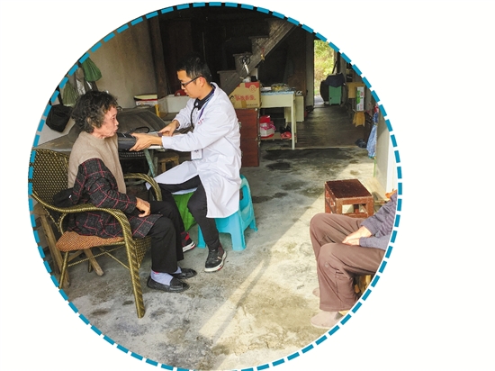 全科医生入户做家庭随访。