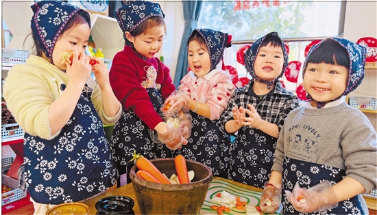 小朋友们腌制萝卜 图片由南浔区旧馆街道提供