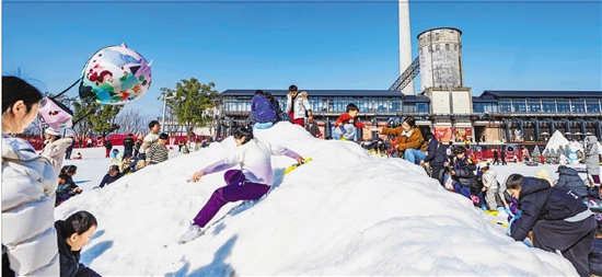 1月9日,杭州大运河杭钢公园冰雪嘉年华开幕。嘉年华位于公园中央大草坪,将持续到2月底,游客可以通过专用设备体验冬季冰雪项目。
