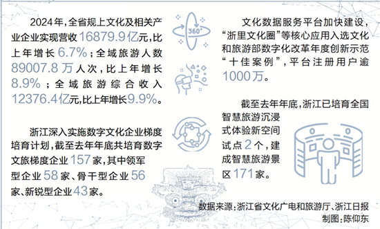 文化数据服务平台加快建设,“浙里文化圈”等核心应用入选文化和旅游部数字化改革年度创新示范“十佳案例”,平台注册用户逾1000万。