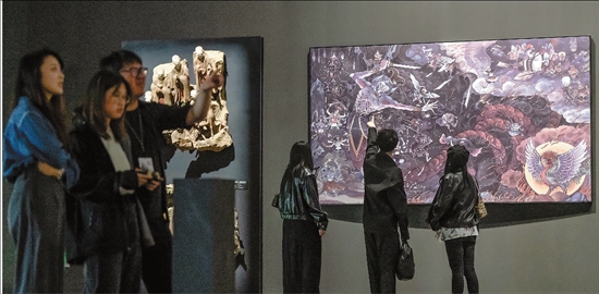 2025年4月10日,中国美术学院举办“黑神铸炼——黑神话:悟空”艺术展,观众在虚实交织中体验文化与科技融合的美学之旅。本报记者 徐彦 摄