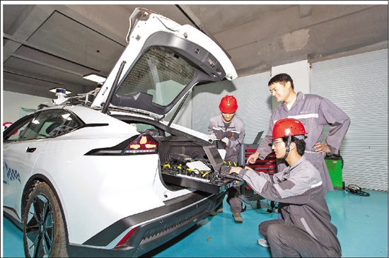 在浙江农业商贸职业学院,学生正在进行新能源汽车技术实训。 骆海淼 摄