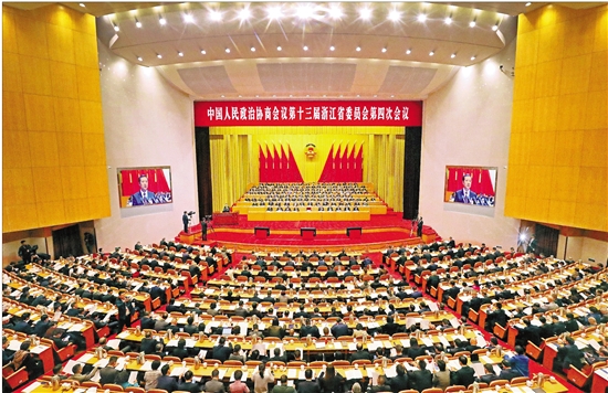 1月13日,中国人民政治协商会议第十三届浙江省委员会第四次会议在省人民大会堂隆重开幕。 本报记者 林云龙 董旭明 倪雁强 摄