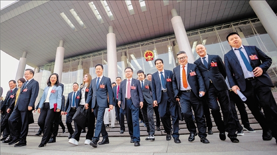 1月16日下午,省政协十三届四次会议圆满完成各项议程,在杭州胜利闭幕。图为省政协委员步出会场。