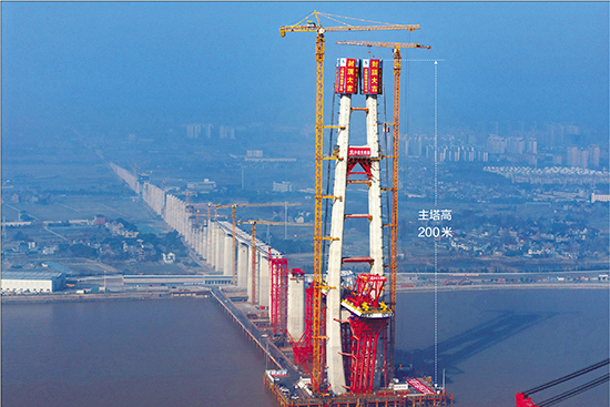 杭州湾跨海铁路大桥首座主塔封顶