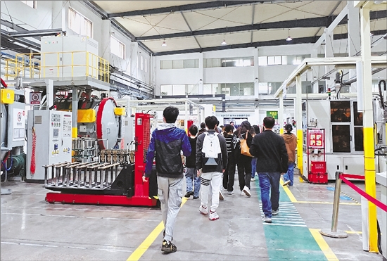 台州学院选修微专业的学生在银轮机械的车间参观。 受访者供图