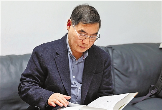 申有青在查阅资料。 本报记者 徐文迪 彭鹏 钱璐斌 摄