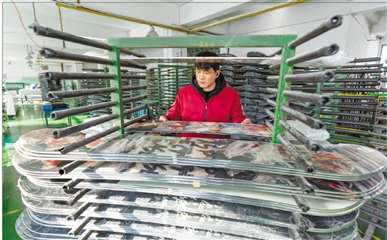 1月22日,在宁波市北仑区霞浦街道的茂森体育用品车间,工人正忙着赶制滑雪单板订单。 本报记者 贺元凯 通讯员 童璐嫣 摄