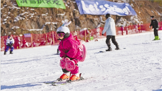 图为小朋友在湖州安吉云上草原滑雪场滑雪,冰雪经济正成为浙江冬日消费市场的新引擎。 新华社记者 黄宗治 摄