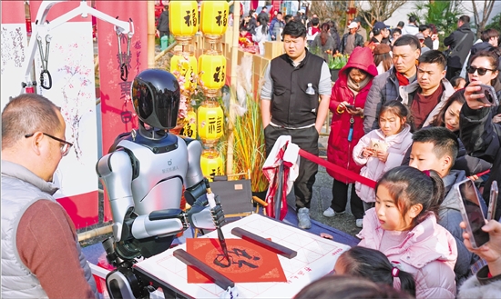 1月24日,安吉县“年味在安吉”系列活动启幕,人形机器人为游客画马写福字,给市民游客送上全新的游玩体验。