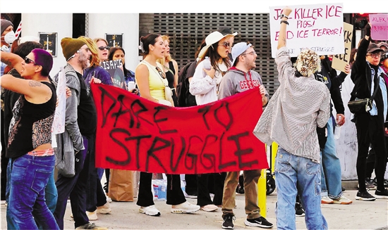 1月25日,人们在美国加利福尼亚州洛杉矶的大都会拘留中心附近参加示威抗议。 新华社发