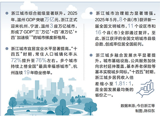 ● 浙江城市治理能力显著增强。2025年5月,8个县(市)获评新一届全国文明城市,11个设区市和16个县(市)全部通过复评。至此,浙江获评的全国文明城市县级总数、创成率位居全国前列。