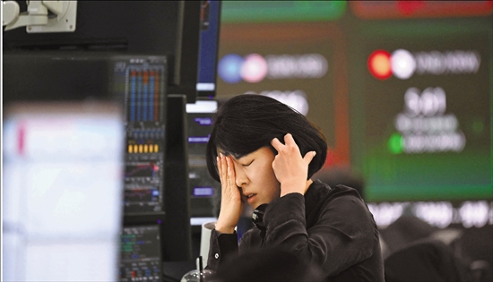 2月2日,工作人员在韩国首尔的韩亚银行忙碌。韩国股市2日遭遇重挫,主要股指韩国综合股价指数大幅下跌超5%,触发熔断机制,暂停交易5分钟。 新华社/法新