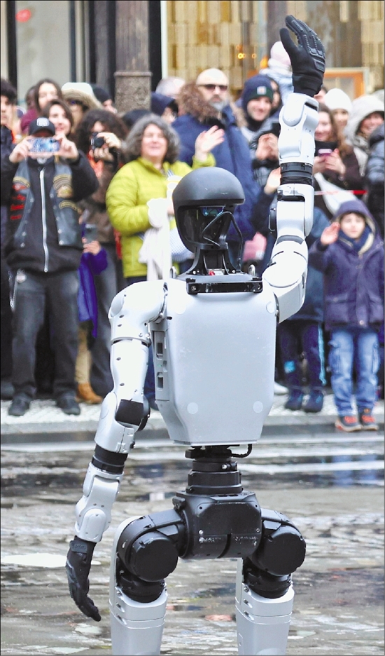 2月1日,在香榭丽舍大街,由宇树科技及其法国代理INNOV8集团提供的机器人参加巡游活动。