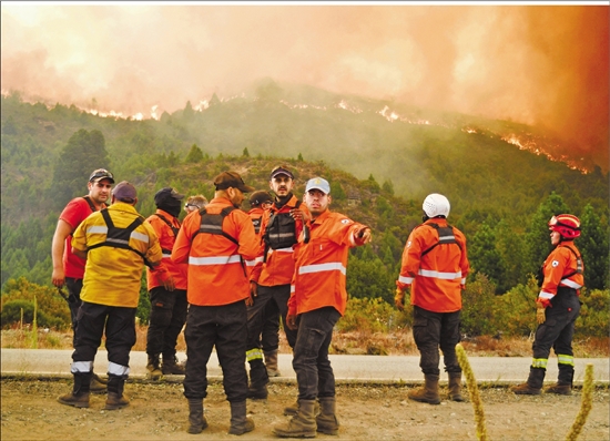 2月1日,在阿根廷巴塔哥尼亚地区丘布特省乔利拉,民防人员参与灭火。1月29日,阿根廷政府宣布巴塔哥尼亚地区因野火肆虐进入紧急状态。
