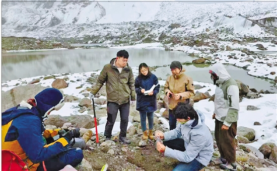 杨小平(右三)带领团队在野外科考。