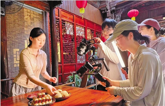 浙江外国语学院学生在衢州杜泽老街拍摄非遗短片《记得》。