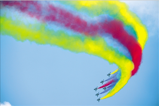 2月3日,中国空军八一飞行表演队在第十届新加坡航展首日进行飞行表演。 新华社发(邓智炜 摄)