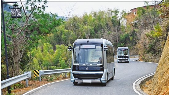 | 2月3日,造型新颖的无人驾驶小巴在松阳县陈家铺村实地测试。该小巴为纯电动车型,能精准感知山村的复杂路况,实现自动循迹、避障、跟车、停靠等功能。这将助力山区村应对节假日客流高峰,提升服务品质。 本报记者 胡元勇 栾兰 通讯员 叶华 摄 |