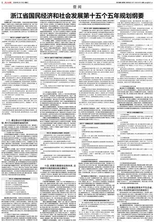 浙江省国民经济和社会发展第十五个五年规划纲要