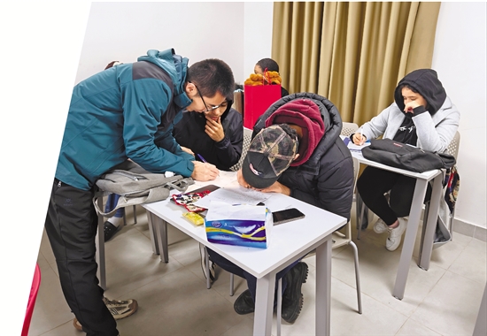 义乌工商职业技术学院的老师在指导摩洛哥当地学生。 受访者供图