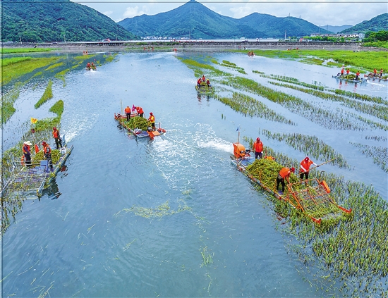 象山用新型刈割船“剿灭”互花米草。 通讯员 沈洋 摄