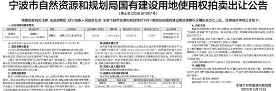 宁波市自然资源和规划局国有建设用地使用权拍卖出让公告