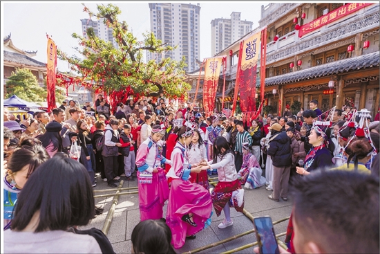 畲乡风情街上的巡游现场。 共享联盟·景宁 何彬峰 摄