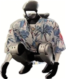 寰智科技实验室,机器人穿着具有海岛风情的衣服。